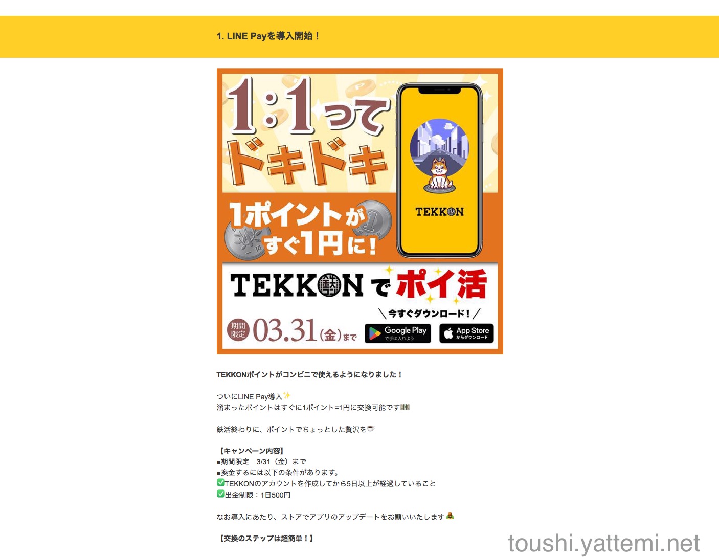 【期間限定】「TEKKON」で稼げるWECポイントをLINE Payに1ポイント1円で交換できるようになった! のまとめ