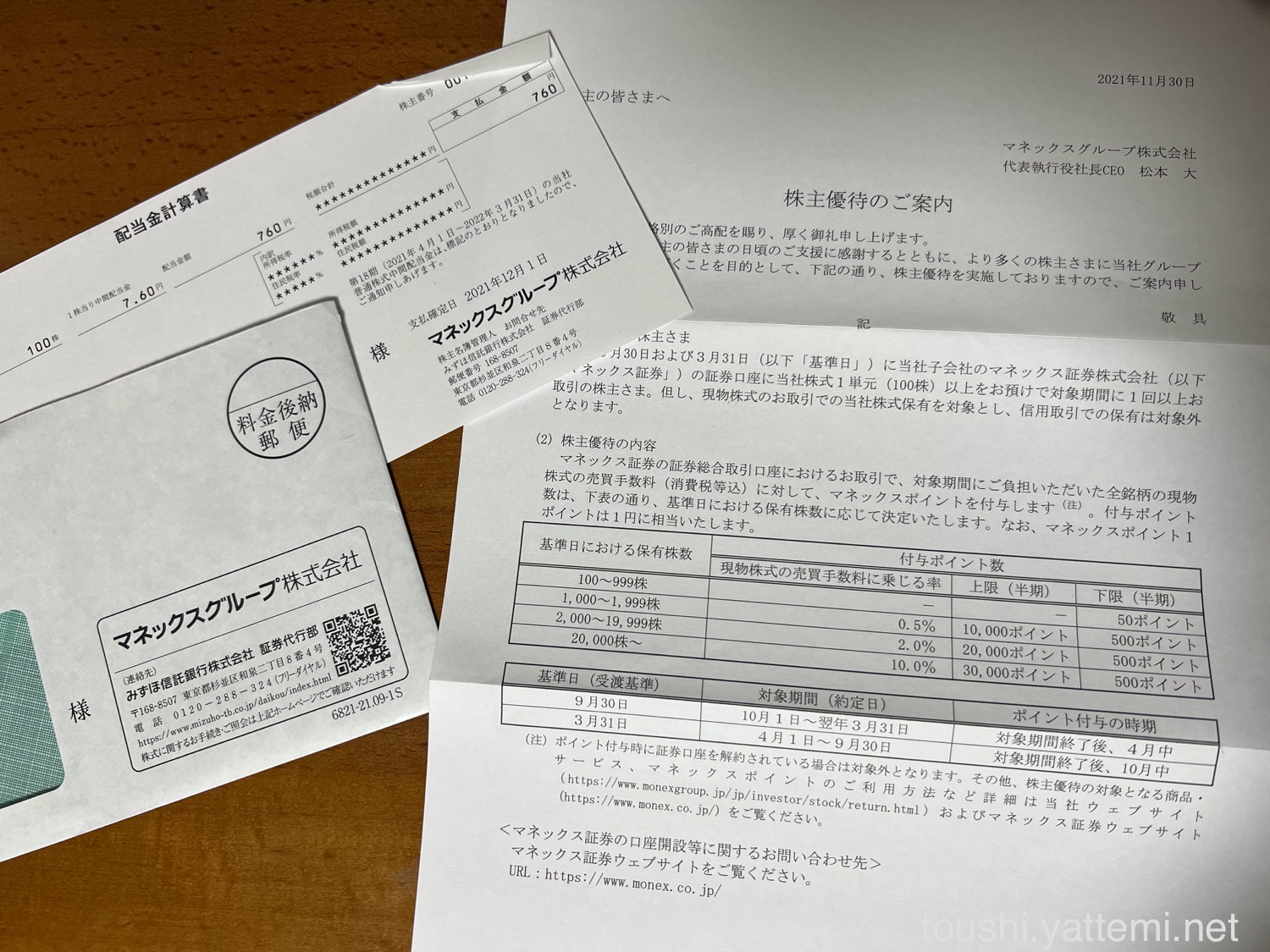 マネックスグループは、1株あたり7円60銭だったので、配当金は760円でした。