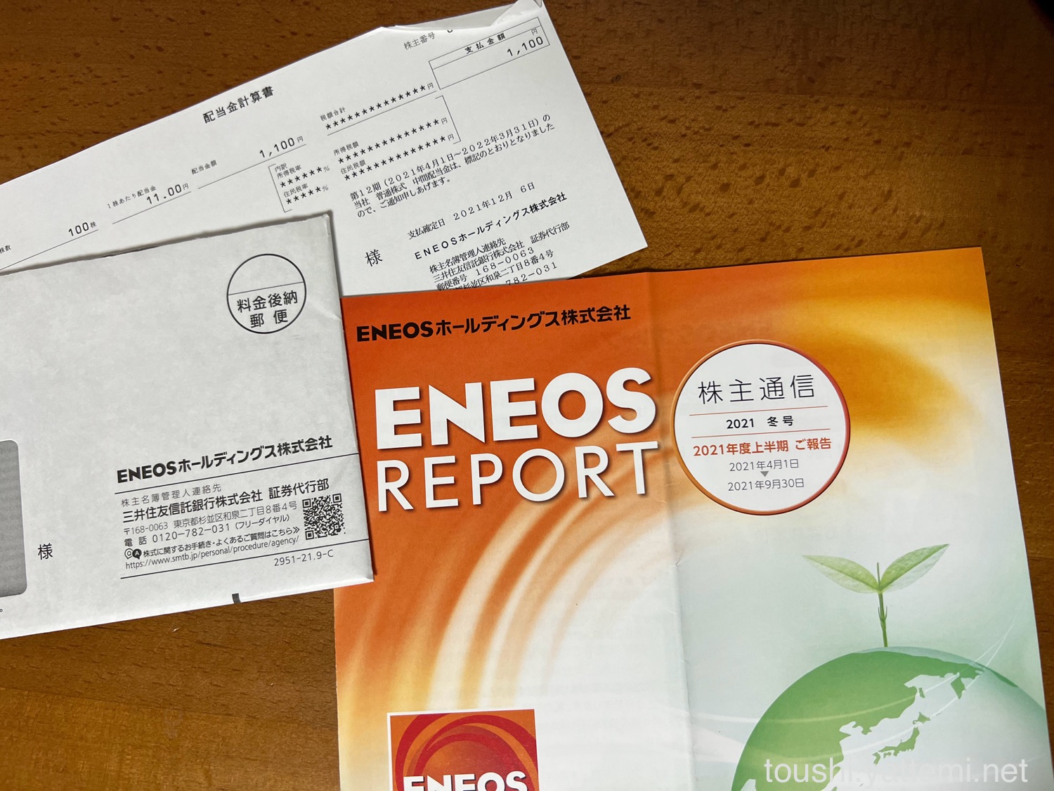 ENEOSは、1株あたり11円だったので、配当金は1,100円でした。