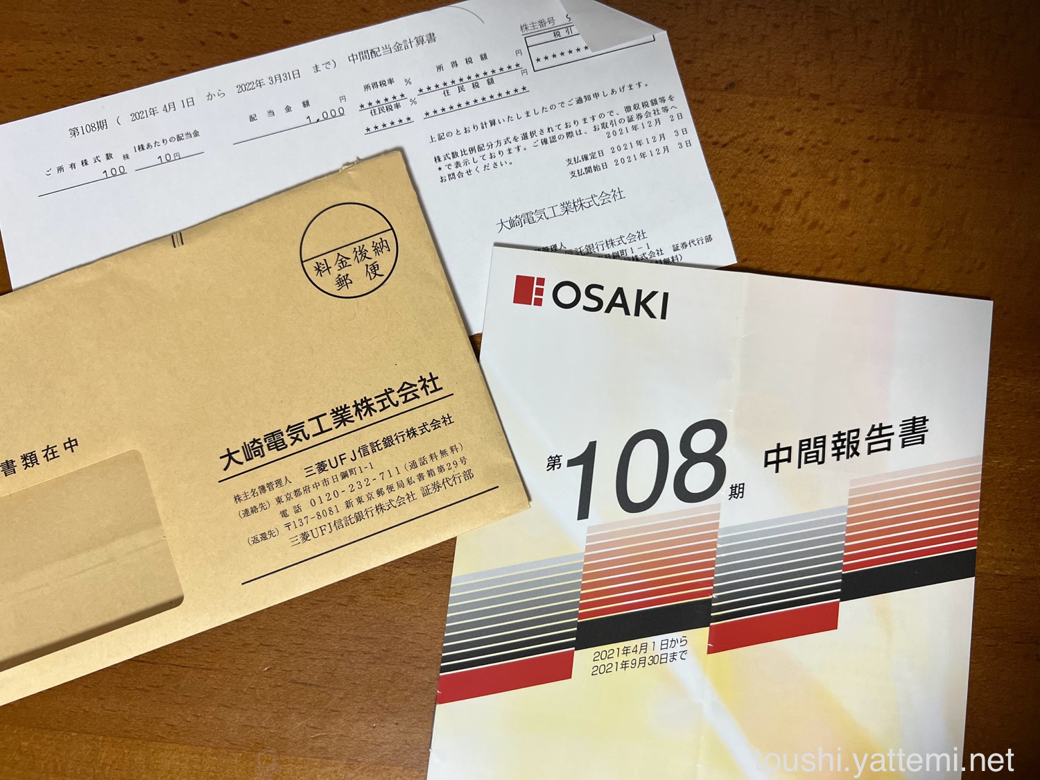 大崎電気工業は、1株あたり10円だったので、配当金は1,000円でした。