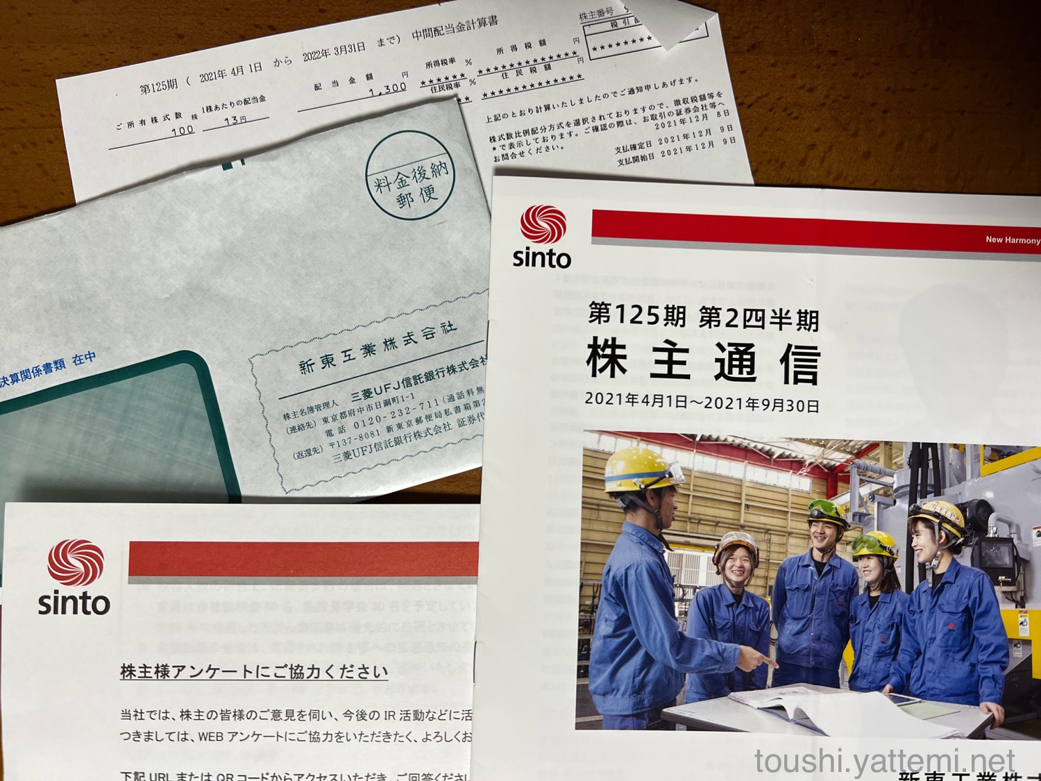新東工業は、1株あたり13円だったので、配当金は1,300円でした。