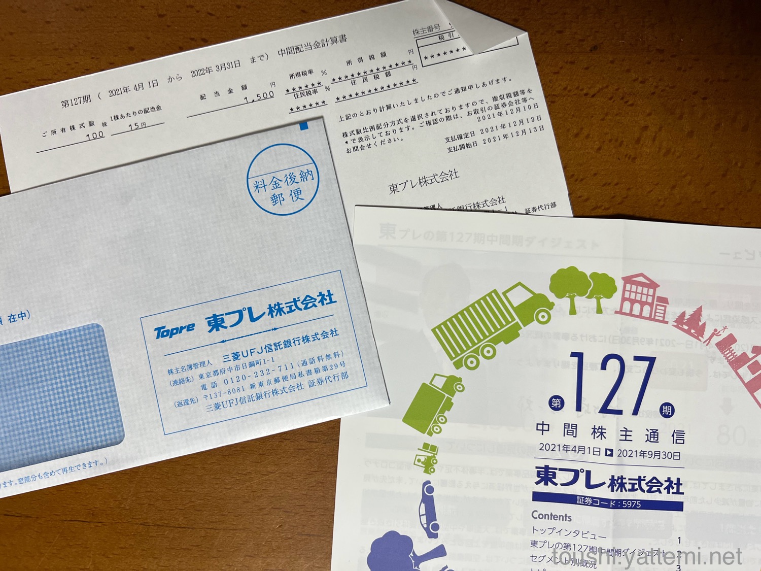 東プレは、1株あたり15円だったので、配当金は1,500円でした。