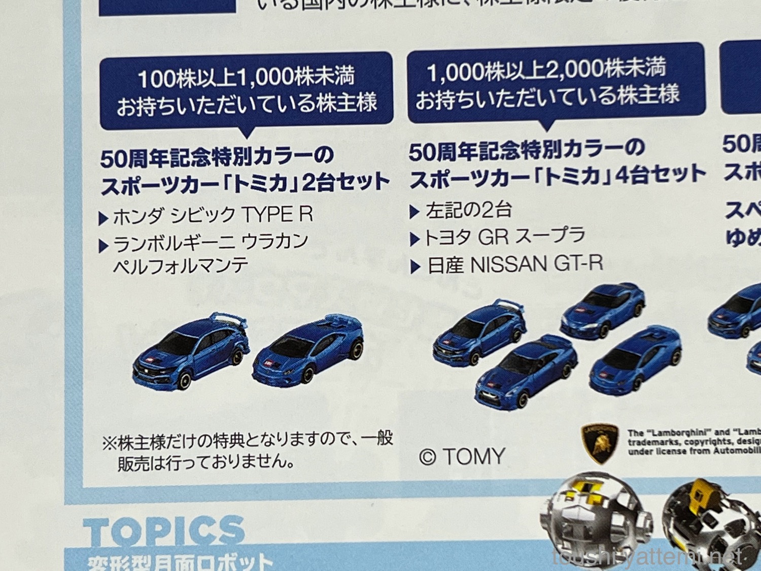 株主優待も同時に届いたのですが、1年以上3年未満で保有しているので、タカラトミーモールの割引が30%になりました!