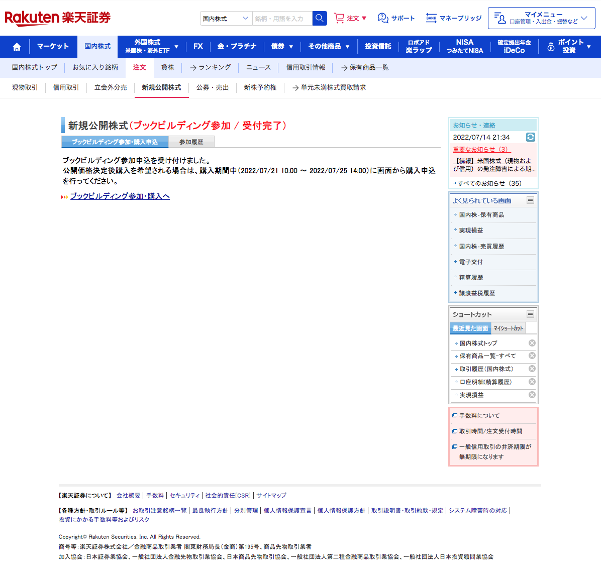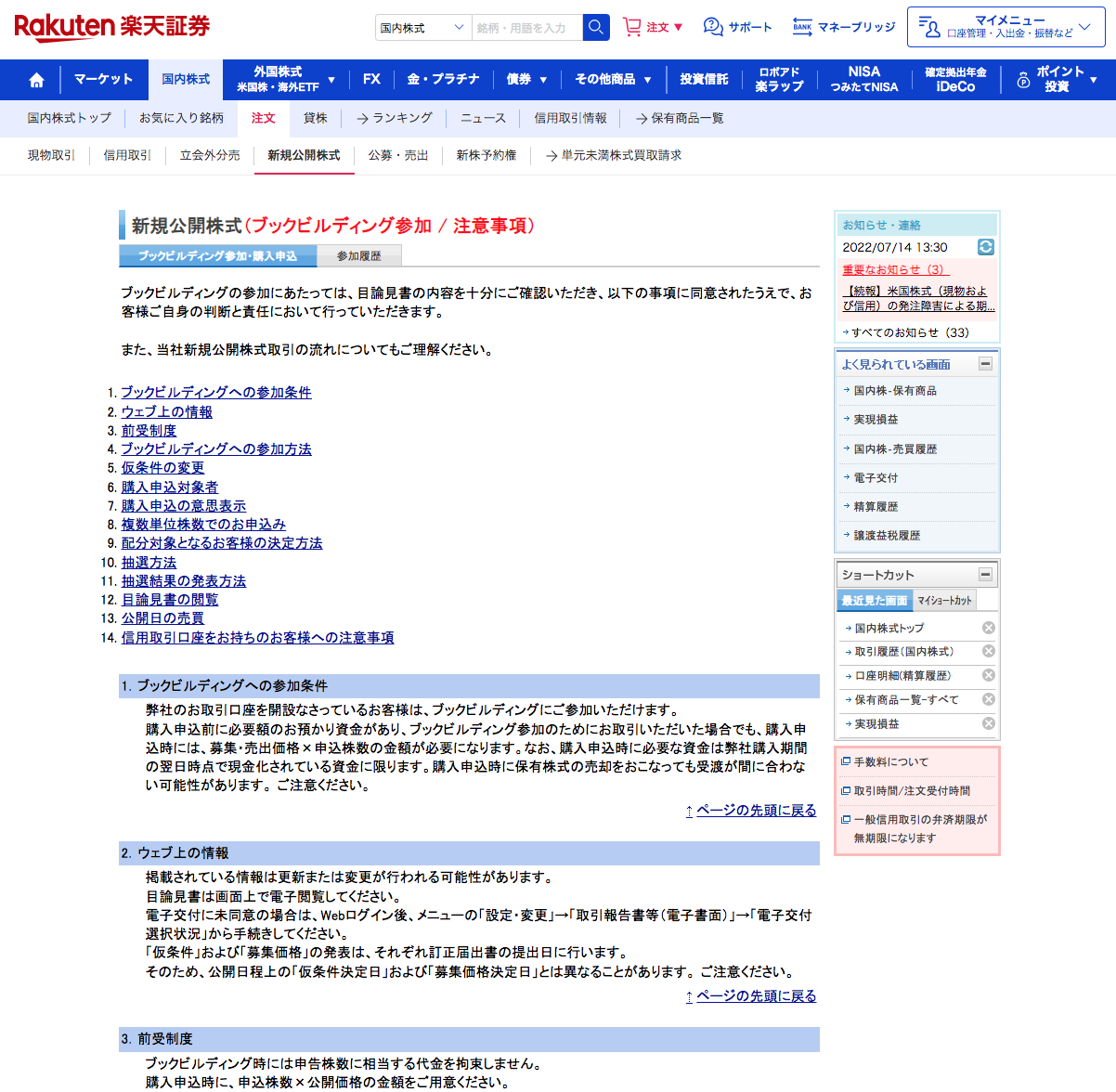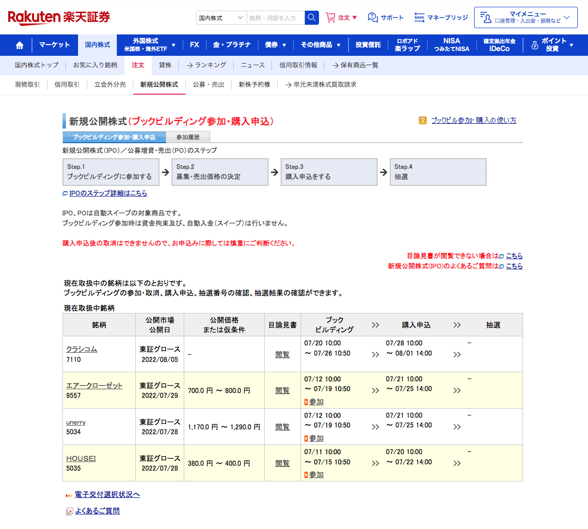 新規公開株式 (ブックビルディング参加・購入申込) 国内株式