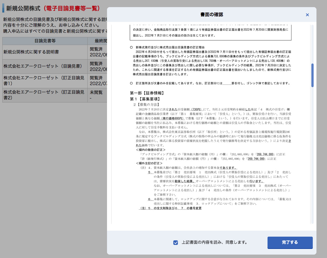 一覧を見てみると「訂正目論見書2」が追加されていて、閲覧してみたら、
