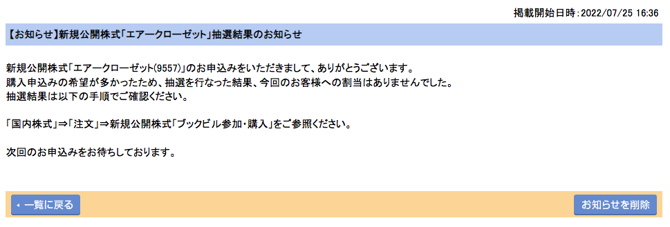 新規公開株式(IPO)に応募してみた!初めてのブックビルディング【エアークローゼット(9557)】 のまとめ