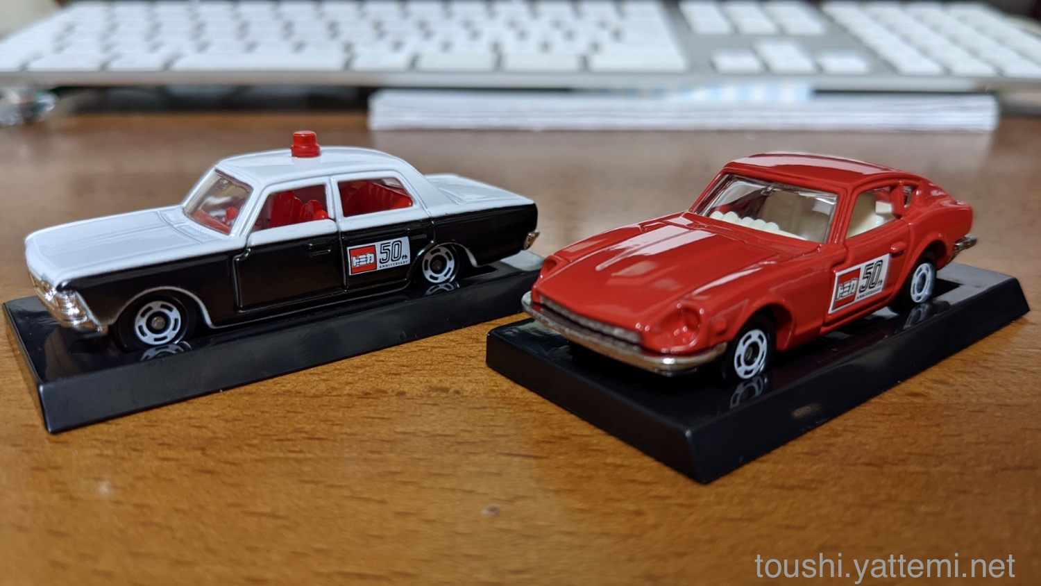 50周年のときだったので、50周年記念「トミカ」2台セットとして「日産 フェアレディ Z 432」と「トヨタ クラウン パトロールカー」で、トミカを載せる台座もついていました!