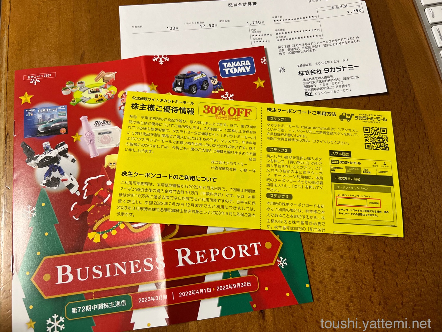2022年は、トミカが先に届いて、タカラトミーモールの割引クーポンは12月に届きました。