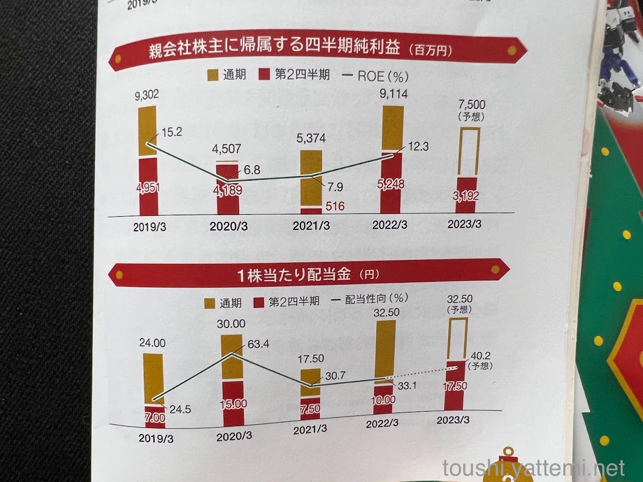 配当金は、去年1,000円だったのですが今年は1,750円に増額されました。ただ、年間の配当予想は32.5円になっているので、現状では去年と同じになる予想になっていました。