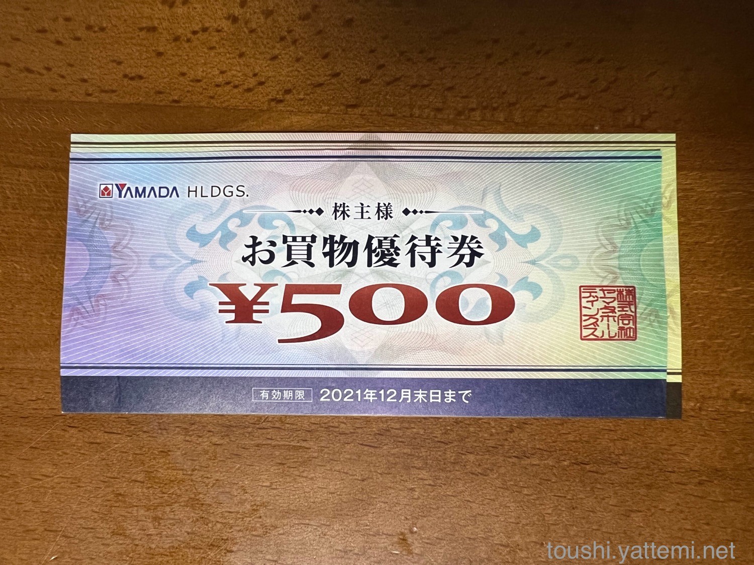 ヤマダHD(9831)の株主優待は、店舗で使える優待券をいただけます。