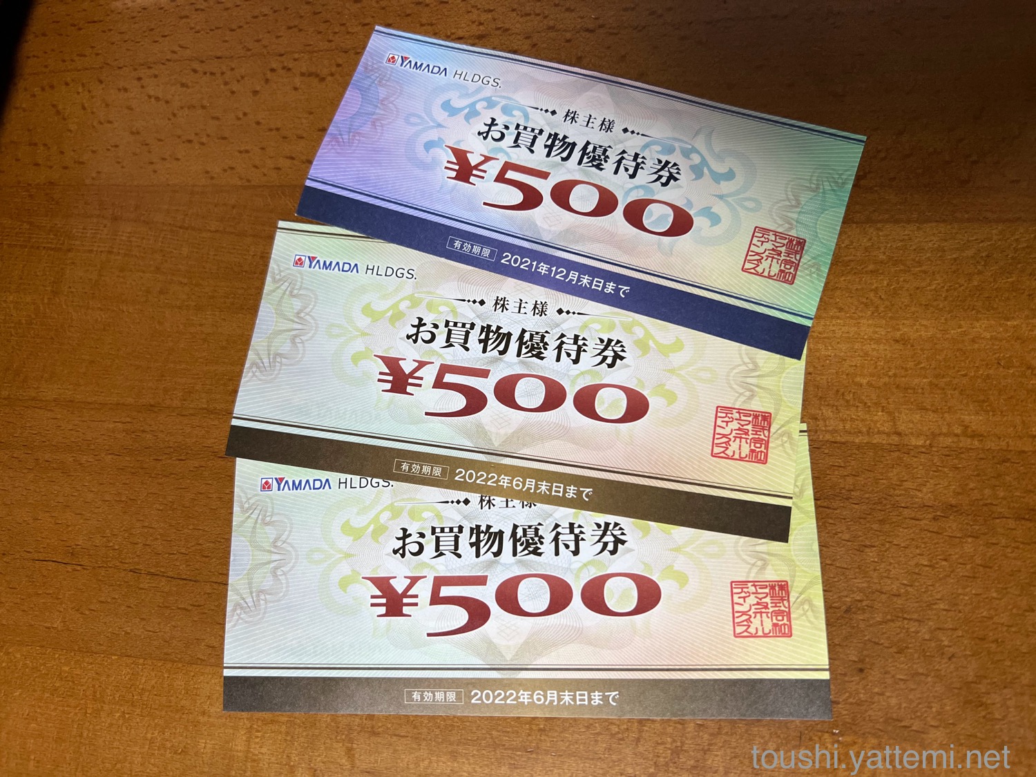 ちなみにヤマダHDの優待券は、もらえる時期によって券の色が違います。