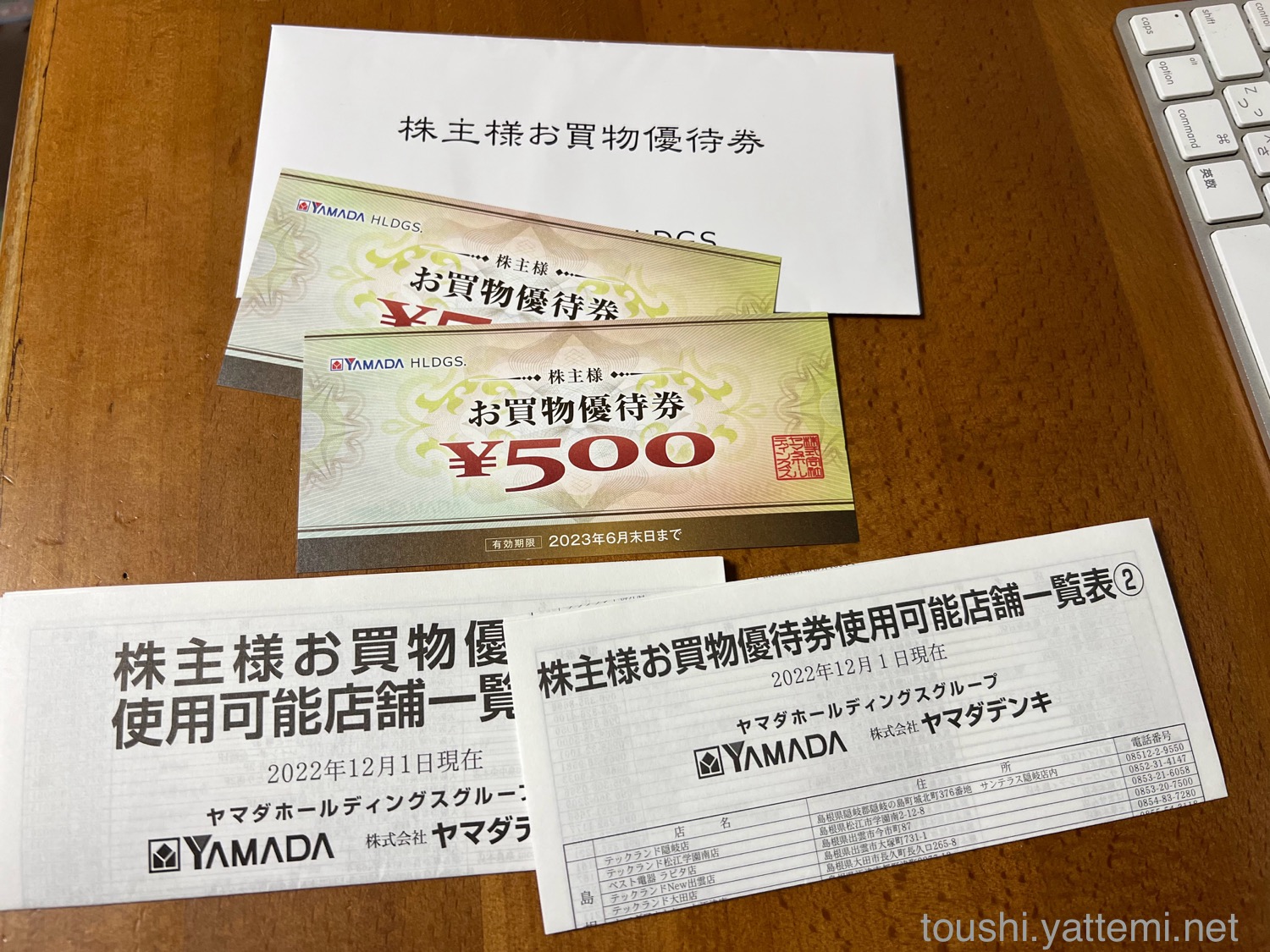 ヤマダHD(9831)の株主優待で店舗で使える優待券(1,000円分)をもらいました。