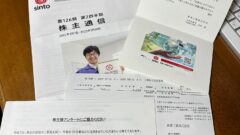 これは去年の写真ですが、薄紫色の方は6月下旬の株主総会後にもらえる方で、有効期限が年末までになります。