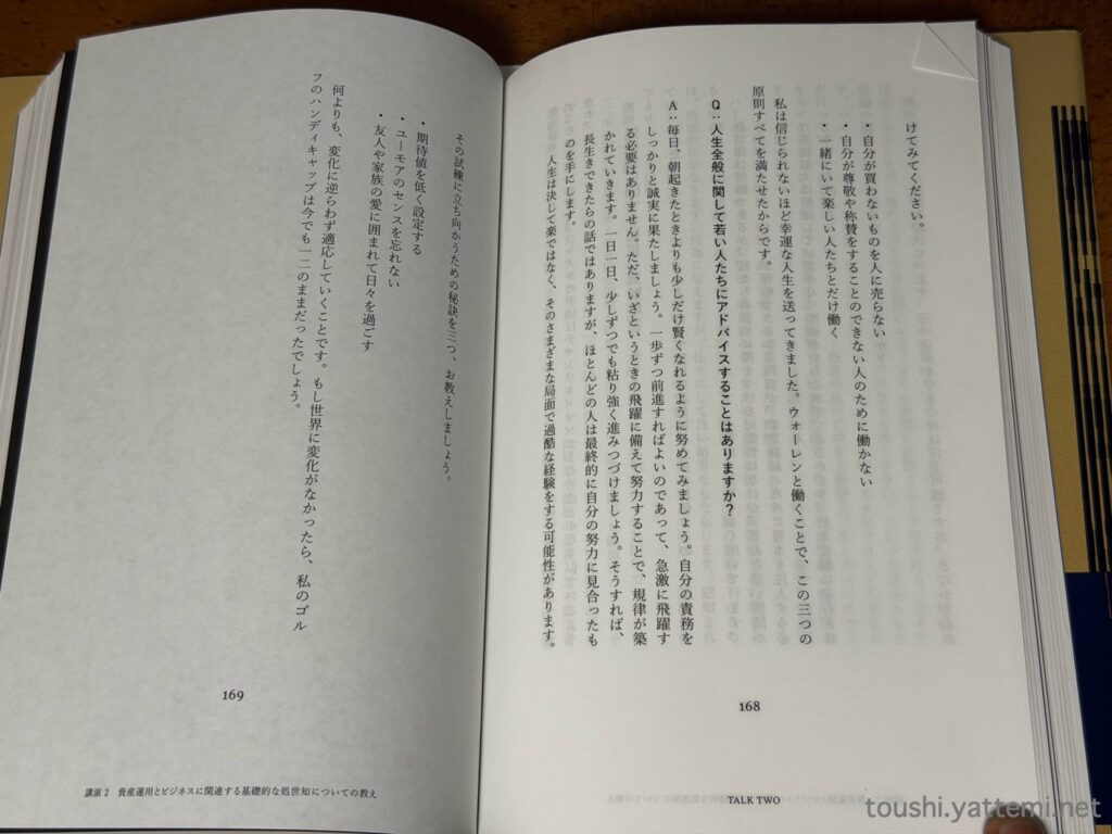 「準備」の説明の1つには、【貪欲に本を読み、生涯を通じて自己学習しつづける。好奇心を養い、毎日少しずつでも賢くなれるように努力する】という、「投資」というよりは「人生に必要なもの」のようにも考えられる内容もありました。