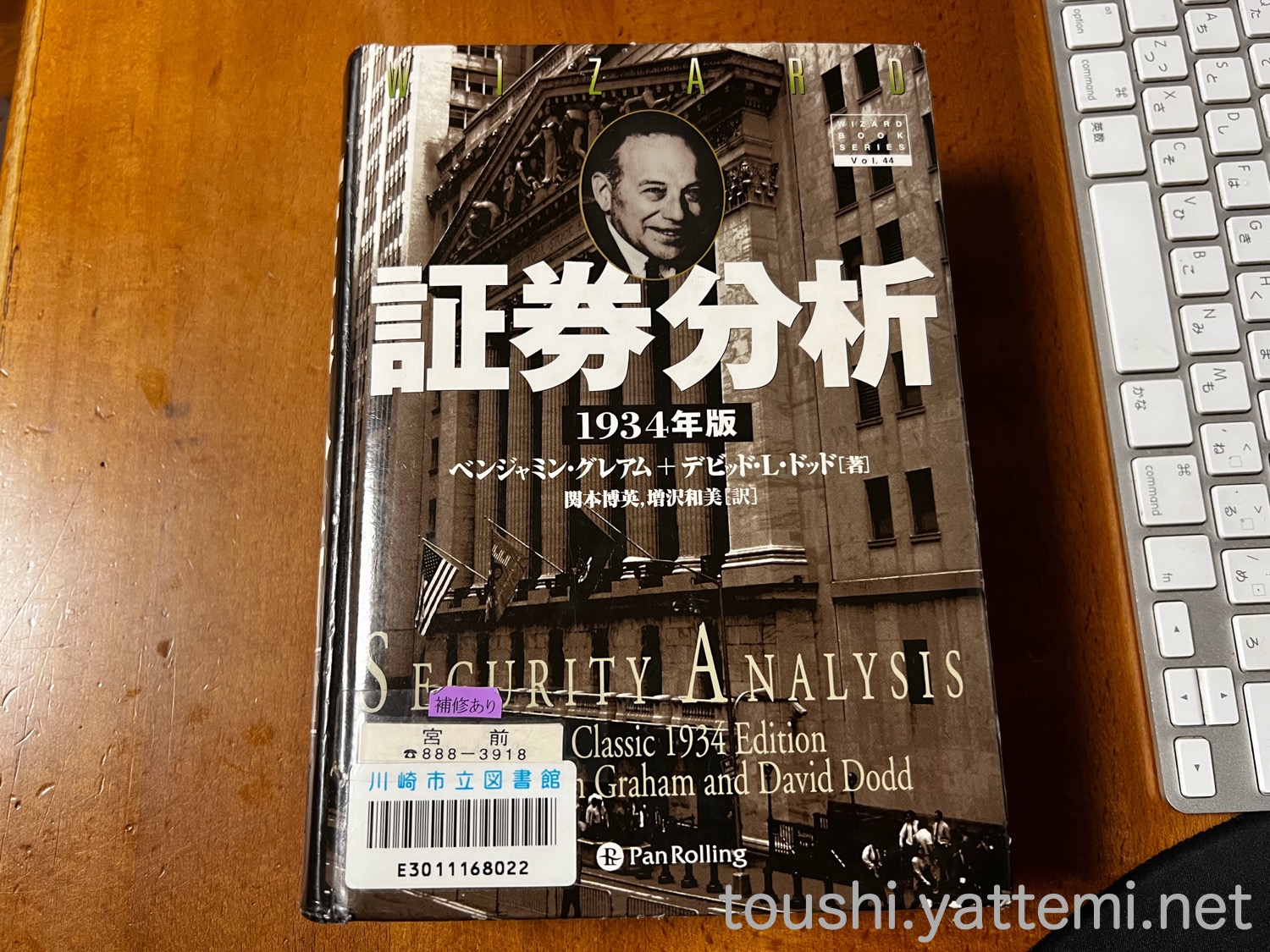 この本の中でもちょこちょこ出てきましたが、ベンジャミン・グレアムとデビット・L・ドットが書いた「証券分析」が図書館にあったので借りてみたのですが、想像以上の鈍器本でした。