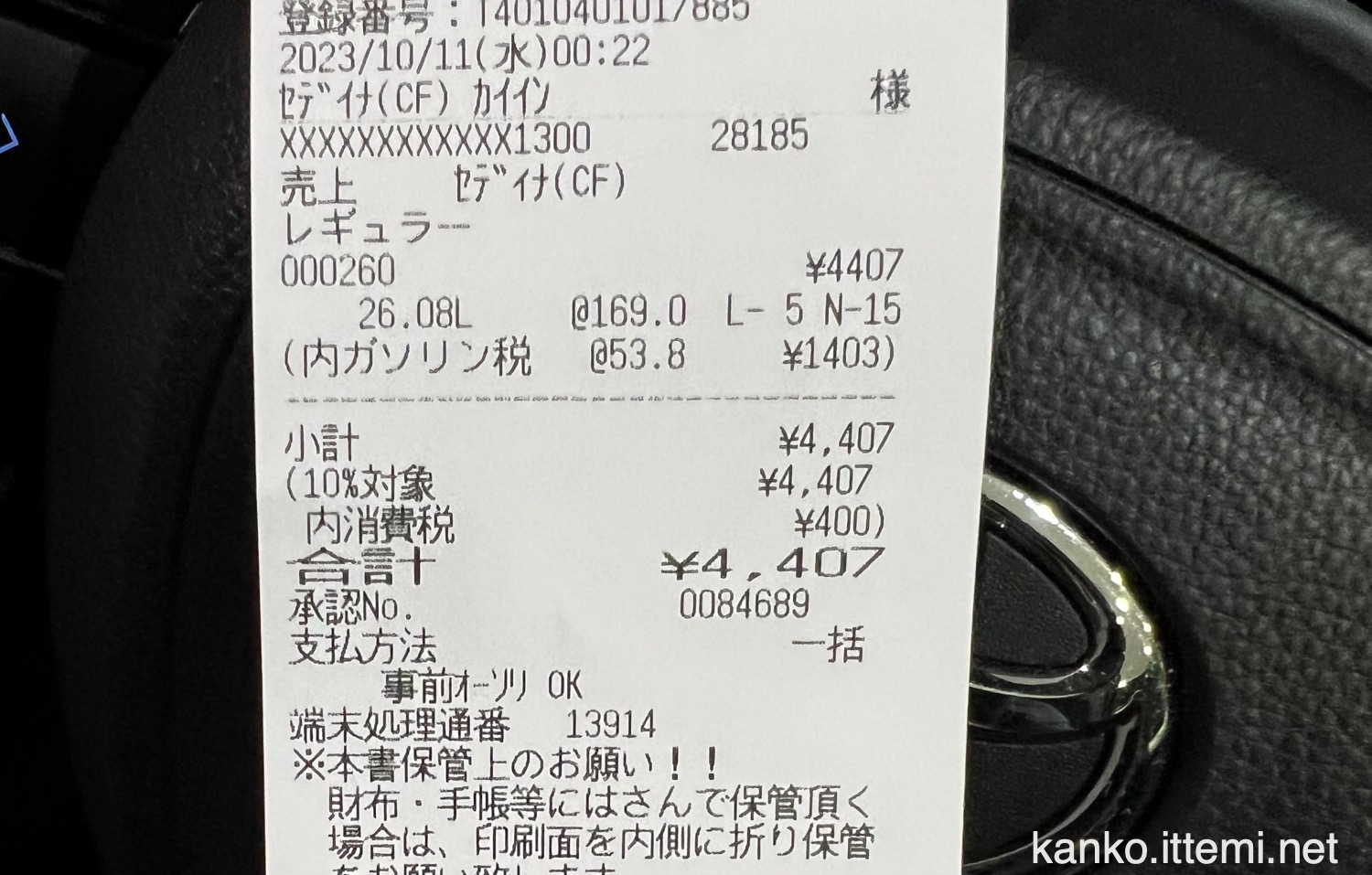 車に準備されている法人カードなので、個人価格だった場合はわかりませんが、実際のガソリン代よりは請求された距離料金はちょっとお高めになりました。