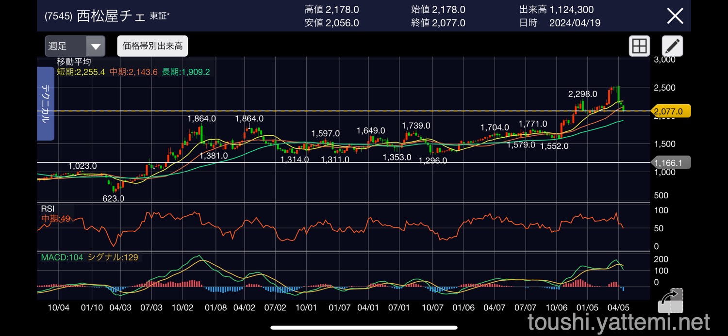 - 西松屋 2,080円で売却(含み益:101,400円)