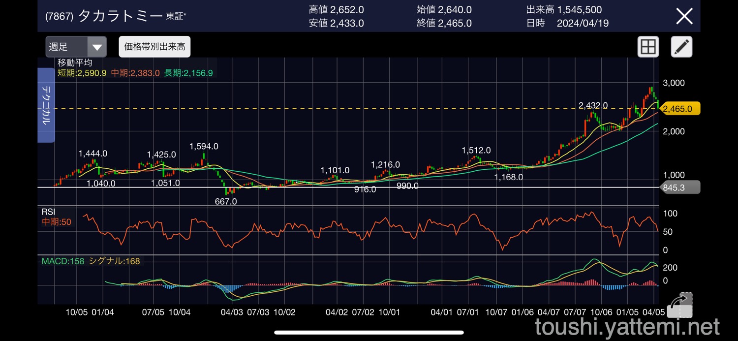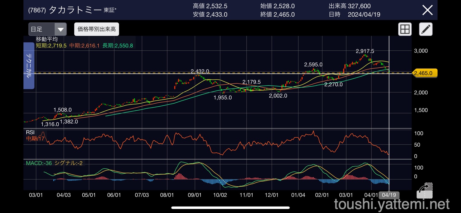 - タカラトミー 2,445円で売却後、2,529円(逃した利益:8,400円)